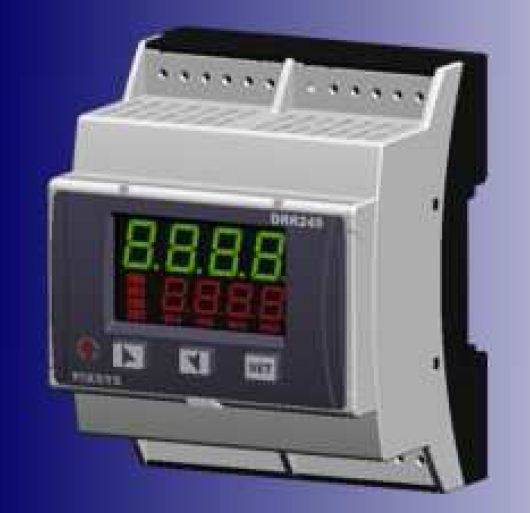 Controlador para montaje sobre riel Din marca PIXSYS SNC modelo DRR245 21ABC T Alimentación 24/230 Vac/dc +/ 15% 50/60Hz, display dual de 4 digits, 8 LEDs rojos, punto decimal, entradas: 1 configurable para TC K, J, S, R, PT100 (2 rangos), NI100, PT1000, PT500, PTC1K, NTC10K, 0..10V, 0/4..20mA, 0..40mV , Potenciometros 6K, 150K. Salidas: 2 relays 5A resistive + 1 logic SSR 12V 30mA / 4..20mA / 0...10Volt para control o retransmisión, comunicaciones RS485 Modbus RTU (57600baud max) entrada TA 50mA, modos de control: ON/OFF, P, PI, PID Autotuning, protección: IP65 panel, bornera IP20
