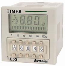 Timer Digital Autonics modelo LE3S de 48x48mm, una predeterminación con salida a relé, alimentación 24 a 240 Vca / 24 a 240 Vcc enchufable a zócalo octal (No incluído) y demás características según hojas técnicas adjuntas