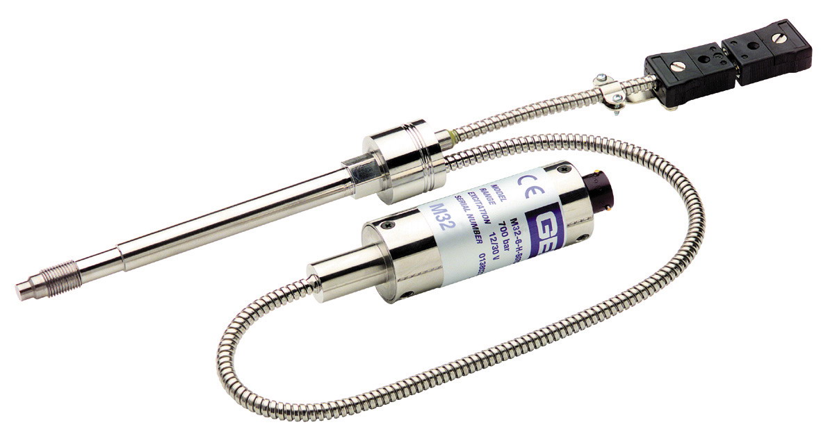 Transductor de presión y temperatura para alta temperatura (MELT) Rango 0...700 Bar, salida 3.33 mV/V, precisión 0.50 FSO, TC J.