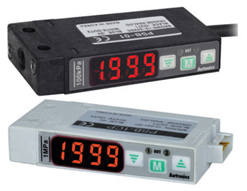 Sensor, indicador y controlador de presión para aire marca AUTONICS CORP. modelo PSB 1 C M5, rango de sensado 0..10b alimentación 12..24 Vcc, protección IP40, temperatura de trabajo 10..+50ºC, cuatro digitos, conexión de presión 5mm, salida PNP Colector abierto. Salida a conector.