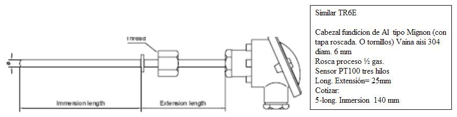 PT100 TTR2 300 mmSENSOR Pt100 CON CABEZAL DINB c TERMOVAINA TTR2 |